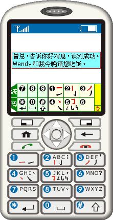 微软五笔:以电脑键盘上五笔编码的英文字母,对应到键盘的数字按键2至9输入单字。